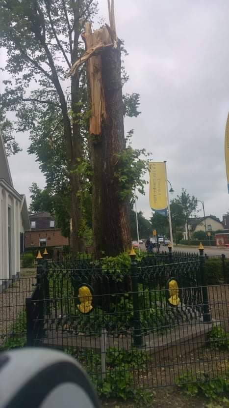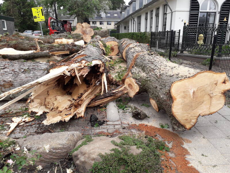 De Wilhelminaboom kort na de valwind waarbij de boom dusdanig beschadigd was dat het gekapt moest worden.