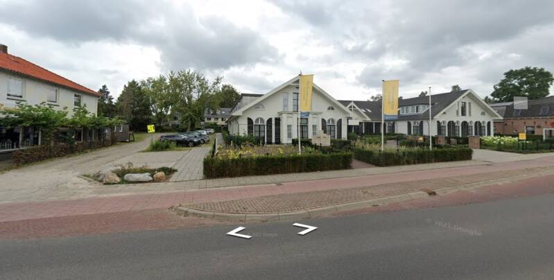 Loop over de parkeerplaats links van het oude gemeentehuis. Aan het eind van de parkeerplaats is een brandgang. Ga in deze brandgang met de bocht mee naar links en aan het eind van de brandgang gaat u rechtsaf naar de Schermlaan.