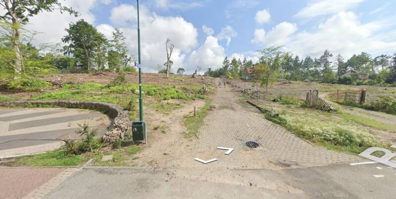 De woningen rechtsonder staan aan de Burg. Vd Boschlaan. Het informatiebord staat (net buiten beeld) midden onderaan.